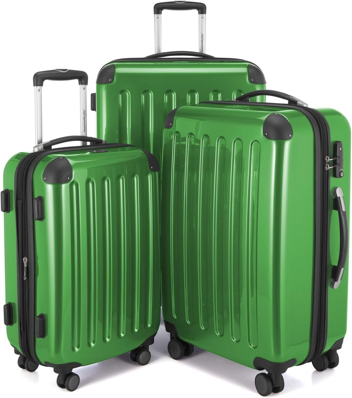 HAUPTSTADTKOFFER - Alex - Set de 3 Valises rigides Bagage Trolley 4 Roues, TSA, (S, M & L), VertPACK DE 3 PRATIQUE : bagage ร main, valise ร coque dure moyenne + grande pour toutes les occasions EXTREMEMENT SOLIDE : Coque dure de grande qualitรฉ en Polycarbonate + ABS, incassable, rรฉsistant aux chocs + chutes TRANSPORT CONFORTABLE : Poignรฉe tรฉlescopique avec bouton, 4 roues doubles, stable + maniable PLUS DE VOLUME : pli รฉlastique flexible, 15% plus de volume, plus d'espace pour les souvenirs et les bagages. SรCURITร : TSA Serrure ร combinaison (pas de clef)249,95 โฌ