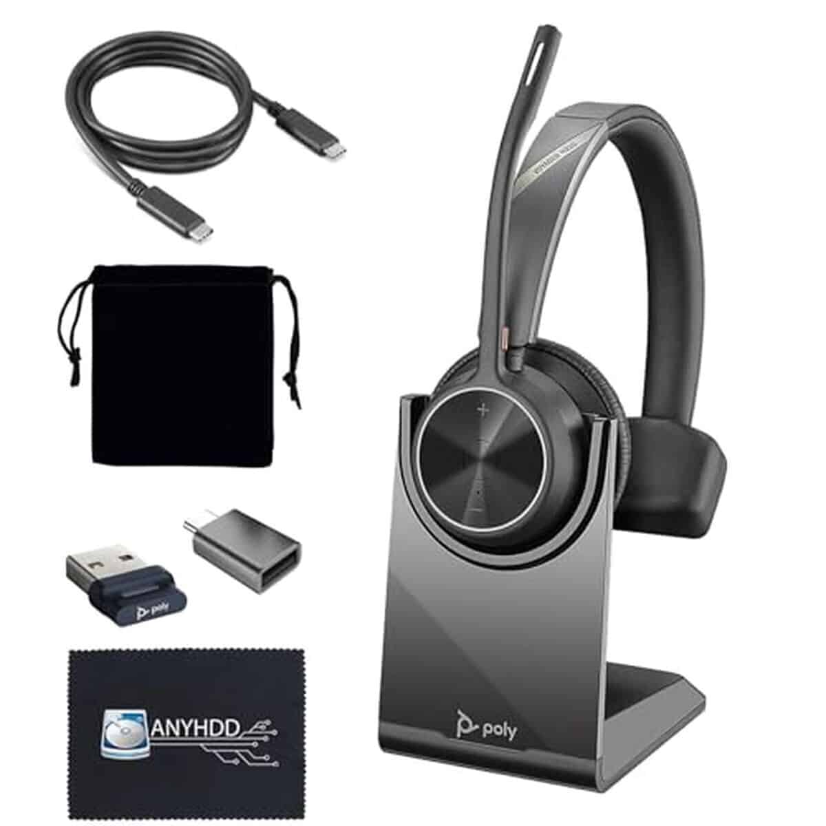 • Poly Voyager 4310 UC Casque sans fil + support de charge โ€“ Connexion ร  PC/Mac et tรฉlรฉphone portable, casque mono-oreille avec micro + station de charge + adaptateur USB A vers C + cรขble USB C-C +
