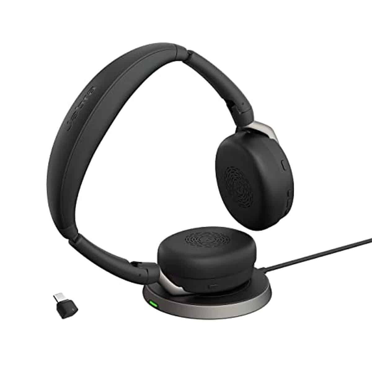 Au-delร de ses performances audio, le Jabra Evolve2 65 Flex propose plusieurs fonctionnalitรฉs bien pensรฉes. Le socle de recharge sans fil inclus est un vrai plus, offrant une solution de rangement รฉlรฉgante et pratique sur le bureau. La perche du microphone, lorsqu’elle est relevรฉe, active automatiquement la fonction sourdine, un geste qui devient vite un rรฉflexe trรจs utile en rรฉunion. Ces dรฉtails ergonomiques amรฉliorent significativement l’expรฉrience au quotidien.